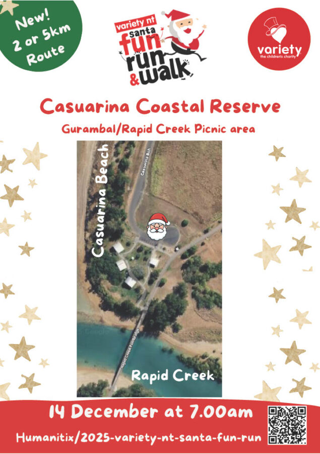 It’s time to suit up in your festive gear and join us for the annual Variety NT Santa Fun Run & Walk – now at a new location, Casuarina Coastal Reserve (Gurambal/Rapid Creek Picnic area)! This Sunday, 14th December, get ready for a SANTAsational morning filled with festive fun, fitness, and fundraising!